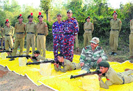 NCC volunteers being imparted training in the use of weapons at the annual training camp in Nurpur. Photo by writer