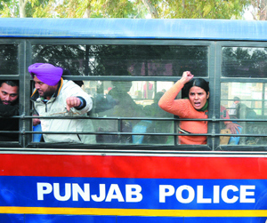 Bathinda, December 23 The drama unfolded when a large number of protesters, who had come from almost all the districts of the state, assembled outside the District Courts Complex and started raising slogans against the policies of the state government. Jaspal Singh, member of the Unaided Staff of Aided Schools Front, Punjab, said the government was not taking their case seriously. He alleged that at the time of elections, the government had promised that the jobs of the unaided staff in the aided schools would be regularised. He added that after winning the elections, the government went back on its promise. The members demanded that the rules of Sarva Siksha Abhiyaan be implemented fully and the students be given school bags and scholarships etc. The protesters included a large number of female staff members. A number of students of the aided schools were also part of the protest. The district administration had warned the protesters to not take to the roads. A large police force had been deployed outside the courts complex right in the morning today to prevent any kind of protest. Giving two hoots to the warning, the protesters soon took to the roads and were swiftly detained and ferried to the police stations in four police buses. Earlier too, in November this year, members of the Unaided Staff of Aided Schools Front, Punjab, were rounded up and prevented from protesting against the state government. Around 35 members of the front, who were coming from Samana, were detained by the police and were released later. |