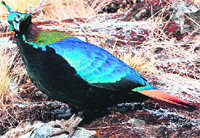 snow. They can usually be seen in pairs during the breeding season, which is from April to August. They often involve in communal roosting. Though Monal has not been declared endangered, , bird of it's close resemblance Chinese Monal has already been put on the list of threatened birds due to poaching and other anthropogenic factors. It is to be noted that male Monals were hunted in large numbers for its crest feathers until it was legally banned. Experts attribute various reasons for the diminishing number of the pheasant. Forest scientist Dr Ritesh Joshi said, “Forest fire is the prime reason behind the declining population of Monals in the state apart from illegal killings in the high altitude areas, where it is easy to get away with the crime."The state government and Forest Department should take immediate steps to conserve the bird as apart from being the state bird, it is a beautiful avian species. |