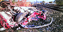 Pathankot, January 19 Among the deceased were three members of a family: Keshav Katoch, a retired executive engineer, his grandchildren Aarushi (10) and Shivam (6). The car driver, Sham Lal, was the fourth person killed in the mishap. The victims were on their way from Pathankot to their native Indupur village in Indora tehsil of Himachal Pradesh. The incident occurred on the Pathankot-Jalandhar road, 7 km from here. Such was the impact of the accident that the 12492 Down Jammu-Barauni Express, which runs once a week, dragged the car up to a distance of 150 metres before the vehicle was thrown off the track. The car was damaged beyond recognition. The bodies of the deceased, all of whom died on the spot, were taken to Nurpur Civil Hospital, 30 km from here, for a post-mortem examination. Eyewitnesses claimed that the gateman, Sanjay Kumar, failed to close the entry to the railway crossing, which led to the accident. He is absconding and the police has launched a manhunt after registering a case against him at the Indora police station. Ferozepur Divisional Railway Manager Naresh Kumar Goel also visited the mishap site. The Railways have decided to pay a compensation of Rs 50,000 each to the next of the deceased.