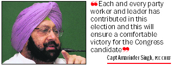 Chandigarh, Saturday 23 Amarinder Singh congratulated the election officials and security personnel for ensuring a free and fair poll despite “attempts by Akali leaders to influence polling”. The Pradesh Congress Committee president especially thanked the party cadre and leaders who, he said, had worked hard in Moga. “Each and every party worker and leader has contributed in this election which will ensure a comfortable victory for the Congress candidate,” he added. |
