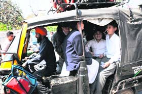 Amritsar, March 6 A lack of follow-up to rein in the errant bus and autorickshaw operators coupled with a callous attitude of the school authorities has made the passage to schools quite unsafe. The Tribune team took a round of the city only to find that the Supreme Court guidelines are hardly being adhered to. Even the police school bus that ferries children was without windowpanes and specified yellow colour as directed by the apex court. Many buses were found without conductors. Though the SC guidelines prohibit the speed limit beyond 40 km per hour, drivers were found driving rather rashly. Students were either standing in the alleys or sitting on others while some were even spotted standing near doorways. A number of buses did not have mandatory horizontal grills on windowpanes, first-aid box or fire extinguisher. In many cses, TATA Magic, a goods carrier, is being used for ferrying schoolchildren. Children are packed inside auto-rickshaws in violation of the SC guidelines, according to which, only six children can be ferried in an autorickshaw at a time. Schools located on busy roads