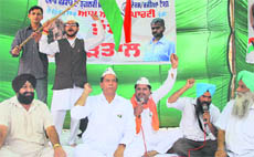 Activists of the Aam Aadmi Party started a hunger strike outside the MC office against the imposition of property tax by the SAD-BJP government. |
