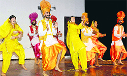 Students participate in the bhangra competition during Jhankaar 2013 at Panjab University in Chandigarh on Saturday. Tribune Photo: