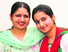 Arshdeep Kaur Batth, who has topped Mohali district, with her mother. tribune photo: