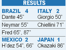 Horizonte: Javier Hernandez scored two headers and missed a stoppage time penalty as Mexico notched a 2-1 consolation win over Japan which sent their opponents home pointless from the Confederations Cup. Both teams had already been eliminated after losing their opening two Group A matches but the win may easy the pressure slightly on Mexico coach Jose Manuel de la