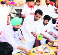 Doda (Muktsar), July 29 “One seat may be given to the Sanjha Morcha, although it is too early to comment in this regard. All secular parties must get united to fight the Lok Sabha elections,” said Bajwa. The PCC president today, as part of his mass contact programme, visited Doda village in the Gidderbaha assembly segment. Speaking on the occasion, Bajwa claimed: “There is no factionalism in the party. I am getting support from all levels.” He targeted the Badals a number of times in his speech. “The Badal family is holding 27 of the 40 departments with them. They have failed to fulfill even a single promise made in their election manifesto,” alleged Bajwa while showing a copy of the SAD manifesto. On the state Congress executive team, Bajwa said the list had been delayed as party general secretary Shakeel Ahmed had gone abroad for 15 days. The PCC president also hinted that he might not contest the Lok Sabha elections. “The decision has to be taken by the high command. At present, I am busy touring the state. I will thus be having less time for the area represented by me”. When asked to comment on the statements by Union leaders that one-time meal can be bought by Rs 5, Bajwa said: “Those giving such statements are far from reality. They have studied at Harward University and not aware of the facts”. Bajwa later went to the house of party worker belonging to the Scheduled Caste at Doda village and had lunch there. He also visited a community health centre in the village to take stock of the situation. No doctor was present at the centre. Local MLA Amrinder Singh Raja Warring also accused Badal of ignoring his constituency