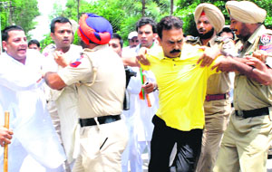 Gurdaspur, August 2 It turned out to be double whammy for Bajwa. While he was being castigated by Majithia at a press conference held at Gurdwara Chotta Ghallughara Sahib, BJP Yuva Morcha activists laid siege to Bajwa’s house in Qadian. The Yuva Morcha activists were led by Tarun Chugh and Shiv Bir Singh Rajan, in charge and general secretary of the BJP’s youth wing. They were protesting against the UPA Government’s “anti-people” policies. Majithia, who was accompanied by former Cabinet Minister SS Sekhwan and Deputy Commissioner Abhinav Trikha, laid the foundation stone of two sub-tehsils and inaugurated two patwar work stations at various places in Qadian Vidhan Sabha segment, which is represented by Bajwa’s wife Charanjit Kaur. Political observers claimed that Majithia’s visit to the PPCC chief’s stronghold, where Charanjit Kaur beat Sekhwan by a margin of nearly 16,000 votes in the last assembly elections, held enough political significance as it aimed at denting the image of the state Congress chief. “Sekhwan, by virtue of being the ‘halqa’ (constituency) in charge of Qadian, is helping the residents in solving their administrative problems. With today’s visit, Majithia has made it clear that Sekhwan enjoys his support,” said a SAD leader. The Minister lashed out at Bajwa for “unnecessarily dragging his name into the illegal mining controversy”. “The Punjab and Haryana High court is seized of the matter. Even the e-tendering process for quarrying was in the knowledge of the high court. How can Bajwa blame the SAD-BJP alliance politicians for being involved in the mining controversy,” asked Majithia. He said Bajwa had developed a rather “unhealthy habit” of constantly criticising the state government. |