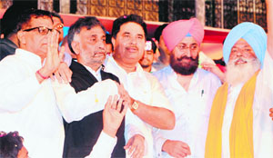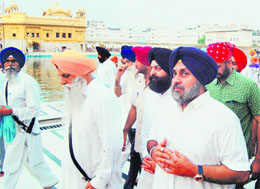 Deputy Chief Minister Sukbhir Badal after paying obeisance at the Golden Temple, Amritsar, on Sunday. Photo: Vishal Kumar |