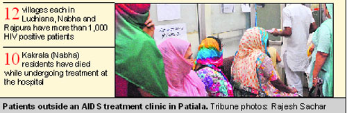 Nabha, August 11 A 48-year-old village Kakrala resident is unwilling to undergo a test for HIV, despite the fact that his wife died of the infection 15 years ago and so did their newborn. At a blood camp recently, he was tested HIV positive. Yet he continues to see other women and plans to remarry. Another HIV positive man, who got married recently, infected his wife. The latter delivered stillborn twins. Hailing from Shambu, he refuses to register himself with a government agency. A dingy one-room clinic run by a pharmacist is the only hope for the 12 HIV positive persons in the small village of Kakrala. Once the problem aggravates, the pharmacist who also acts as a doctor, refers them to the government hospital in Patiala. Fearing the worst, many are reluctant to visit the hospital. Already, 10 Kakrala residents have died while undergoing treatment at the hospital. Owing to the social stigma, HIV positive patients usually do not tell their family members about the infection. They get married and infect their spouses. Data provided by the Punjab State Aids Control Society (PSACS) shows there are over 36,877 HIV positive persons in the state and as many as 2,885 have died of the infection. “The official figures are nowhere close to the actual number of infected persons. At times patients reach us after almost a decade of suffering. By that time, he or she has already spread the infection,” said Dr Amar Singh Azad, Senior Medical Officer at the Anti-Retroviral Therapy Centre, Government Rajindra Hospital. “Counsellors have a very tough time explaining to the patients to bring their spouses for a diagnosis,” he said. Women, once detected with the infection, are condemned to a life of solitary confinement and shame. A victim from Paharhpur village said she was detected carrying the virus five years ago. Her husband has confined her to a room and refuses to come near her. “He makes me feel as if I it is all my fault. He belittles me even as he boasts of visiting other women,” she says, breaking into tears. Her nine-year-old son and a five-year-old daughter are also HIV positive. In Punjab, as many as 62 NGOs are working for HIV/AIDS victims. Rampant drug abuse among the youth is the key factor for the spread of the virus. At least 24 NGOs are distributing syringes and needles free of cost. More than 12 villages each in Ludhiana, Nabha and Rajpura have more than over 1,000 HIV positive patients, most of them unregistered with an official agency, say PSACS sources. The official data shows that HIV is spreading in Amritsar, Jalandhar, Tarn Taran, Gurdaspur, Ludhiana,Patiala, Moga, Hoshiarpur and Faridkot districts. “In the border districts, the incidence of drug abuse is high because of drug peddlers. In other districts, migrant workers and truck drivers have been spreading the virus,” says Dr Usha Bansal, Additional Director, PSACS. In a few villages visited by The Tribune, patients continue to be treated by quacks at roadside shops. At a blood donation camp in Nabha recently, the organisers detected three HIV positive persons from a single village. “We contacted them later and informed them about the virus. But they are reluctant to take medicines. Two of them are in a state of shock,” said Dheer Singh, secretary, Jansewa Society for Eye Care and AIDS. (To be concluded)