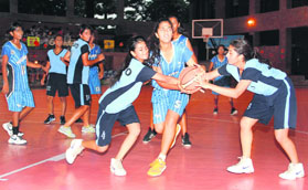 A match during the Seventh Welham Girls’ School Golden Jubilee All India Basketball Tournament being played at the Welham Girls’ School in Dehradun on Saturday. Tribune photo: Vinod Pundir