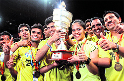 Hyderabad, September 1 "Nobody expected it would be so successful because everyone was comparing it with the IPL, which is actually not right at this point of time...and we are trying to make it big but first time of course it is not so easy. I am sure in the coming years, it will catch up with IPL," she said. The Hyderabad Hotshots, led by Saina, clinched the trophy last night by defeating Awadhe Warriors 3-1. The London Olympic Games bronze-medallist, who was slated to play in the mixed doubles, said she was nervous against the Indonesian sibling pair of Markis Kido and Pia Bernadeth if the tie had come down to the last match. (IBL a great thing to happen, says Awadhe Warriors' K Srikanth) "I am a singles player. Frankly speaking, I was a little scared also because Kido and Pia are world number 9. They are champions. I was just ready and wanted to give my best. That was our strategy but good we pulled out in the men's singles. It would have been a tough match because Kido and Pia are better than us," she said. "In the first game when Ajay (Jayaram) lost, I was a little tense and thought it is going to come down to the mixed doubles. I think the way he played in the second and the third (game) was brilliant. I am very happy for his result because it was the main match for our team," she added. On her match against P V Sindhu, where she outclassed the youngster 21-15,21-7, Saina said, "It was the finals so I personally had no pressure. I just wanted to give my best. Sindhu also played quite well today but I am happy I pulled off my match. "We actually didn't expect the doubles also because Kido and Mathias Boe are great champions at the same time our players did very well." The Hyderabadi said the team just wanted to do its best and didn't expect to be crowned champions in the debut season itself. Saina, who remained undefeated in the tournament, said she is hopeful of ending the year on a positive note. "It is not easy to win seven matches in a row but I was very focussed and I was confident that I could pull off the matches. (Juliane) Schenk is a tough opponent, Sindhu, everyone is giving their best. "I never thought I could pull off seven matches but I am happy to be playing well and getting back my rhythm. And I just hope I end the year on a good note by winning some title. It is not easy but I will give my best," she said. The world number four said next year's IBL would be tougher as more singles players are expected to participate in the tournament. "Next year, it will be tougher because many more singles players would be coming in. It is more difficult because it is a team event and there is a lot of pressure on you but at the same time, it will help me because I would be playing with a lot of top players," she said. Jayaram, who made a remarkable comeback against RMV Gurusaidutt after dropping the first game to win the match 10-21, 21-17, 11-7 said he was under pressure. "I started out under a lot of pressure because I knew mine was the deciding match and if I won, the team would win.” — PTI |