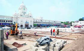 Amritsar, September 15 Marble work at the plaza is underway on a war footing. At present the agency involved in the work is focusing on preparing the open area by Diwali, the deadline set by Deputy Chief Minister Sukhbir Singh Badal, who is personally monitoring the project. Work on the basement will follow later. The marble flooring on 80,000 sq ft will be completed by November. Makrana marble, known to be one of the finest varieties, is being used for the plaza. The sprawling open space at the gurdwara entrance will have ornamental plants, benches and lights for the visitors. However, the proposal to install a radiant cooling system has been dropped with doubts expressed over its feasibility in such a vast area. The system would have kept the marble flooring warm in the winters and cold in the summers, enabling devotees to walk barefoot without any discomfort. The only constructed area on the ground will be that of "jora ghar" (area where shoes are kept). Most of the facilities will be in the basement, work on which will take another six months or so. Among the underground facilities will be a state-of-the-art interpretation and information centre for tourists, VIP lounge, bank, ATM, airlines and railway inquiry, multipurpose hall, security and services area, toilets and other public