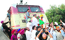 Anandpur Sahib, October 3 The weekly train will depart from the Nangal dam at 4.20 pm every Thursday, halt at Chandigarh at 7:08 pm and reach Nanded at 11:45 pm the following day. The train will return on Saturday. It will start from Nanded at 11 am and reach the Nagal dam at 8:25 pm the next day.The train will halt at Anandpur Sahib, Ropar, Morinda, Mohali, Chandigarh, Ambala Cant, Panipat, New Delhi, Mathura, Gwalior and Basmat. It will traverse a distance of 1,870 km. Punjab Pradesh Congress Committee vice-president Rana KP Singh and Ambala Divisional Regional Manager (DRM) AK Kathpal were among those present on the occasion. Bittu said the train connecting two Takhts would facilitate Sikh pilgrims. He said it was on public demand that the Railways had agreed to provide a two-minute halt at the Morinda station. He would now work for town's rail link with Amritsar, the MP added.