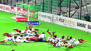 New Delhi, December 13 France, who never went past the pool stages since the introduction of the event in 1979, showed tremendous fighting spirit and came from a goal down to beat Malaysia 3-1 in the shoot-out after both the teams were locked at 1-1 at the regulation time. It was a red letter day for French hockey as till date their best performance in the tournament was a seventh-place finish at home in the introductory edition of the event in 1979. Contrary to the result, Malaysians were quick to get off the block and surprised the French defence as early as in the fourth minute through a field goal from an unmarked Azri Hassan, who had plenty of time to beat Edgar Reynaud in France goal. France had trouble finding their rhythm, but progressively pushed forward. Simon Martin Brisac had a chance in the 20th minute after working hard on the back-line but was left with no angle and his shot went in the side net. After hitting the post from their first penalty-corner, the French had most of the ball possession but could not penetrate the Malaysian defence. France once again struck the post from their second penalty-corner. India take on Pakistan