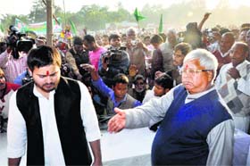 Ranchi, December 16 He was granted bail by the Supreme Court last Friday after two-and-a-half months of being convicted. Soon after stepping out of the jail, Lalu sounded a battle cry against the Bharatiya Janata Party (BJP) ahead of the Lok Sabha elections. Dressed in a grey kurta with a dark blue sweater over it, the 66-year-old former Bihar Chief Minister came out of the main gate and paid obeisance to tribal icon Birsa Munda on the jail premises in the Jharkhand capital. As hundreds of RJD supporters greeted him on his release, Lalu said he would chase away “communal elements” trying to make inroads into Delhi. “The communal elements want to have their stranglehold on Delhi. (With my release) I am now free to chase them away. I will go around the country to strengthen the secular forces and Narendra Modi, BJP or RSS will not be allowed to fulfil their dreams,” Lalu told reporters at the jail gate. When asked about the BJP's Prime Ministerial candidate, Lalu said: “Narendra Modi, or whichever Modi. I am here now; I am ready.” Prasad claimed that the country’s fate hung in balance as 2014 would “decide” whether “Bharat will splinter or remain united”. “I urge parties with secular credentials and their leaders not to allow this happen. I urge them just to rewind to the time of 1947 when the country was partitioned. I will throw my full weight behind secular forces (to make India united),” he said. Continuing his diatribe against “communal” forces, Lalu said, “The communalists will be displaced from Hastinapur,” (a mythological place referred in Mahabharata). Lalu’s first trip after his release was to the Deori temple at Tamar, about 40 km from Ranchi. Lalu warned his opponents not to make the mistake of thinking he is finished with electoral politics. The RJD chief, former Bihar Chief Minister Jagannath Mishra and 43 others were on September 30 convicted by a special CBI court in the fodder scam involving fraudulent withdrawal of Rs 37.7 crore from Chaibasa Treasury during the Lalu-led RJD regime. On October 3, the court had sentenced Lalu to five-year imprisonment and had slapped Rs 25 lakh fine on him.
