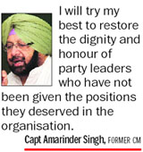 Talking to The Tribune over the phone from Goa, Capt Amarinder said there was an urgent need to tackle the situation keeping in view of the forthcoming Lok Sabha elections. "People are feeling upset over the new list of the PPCC office-bearers because most of the senior leaders have been ignored while few others have not been given the responsibility which they deserved," he said. Alleging that the list was not balanced, he said Bajwa could have done a better job by presenting a real picture of seniority and loyalty of the leaders before the high command.However, he appealed to the party leaders to remain united at this juncture when the Lok Sabha poll was round the corner. "I will try my best to restore the dignity, respect and honour of party leaders who have not been given the positions they deserved in the organisation," he added. |