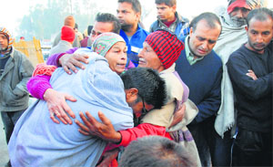 Jalandhar January 2 Senior Superintendent of Police (SSP) Jaspreet Singh Sindhu said the accident occurred at 6.15 am when the victims were crossing a divider with iron grills on the busy highway. He identified the deceased as Raju (36), his wife Lajwanti, their son Raja (7), Sonu (22), his wife Aarti (all residents of Mou in UP) and auto driver Vinod Kumar (35) of Jalandhar. Raju’s younger son Karan and relative Pardeep (20) were admitted to hospital with multiple fractures. Pardeep said they were waiting fora bus near Kahnpur village when they decided to take an auto. The Senior Superintendent of Police said the police had identified the truck driver, who was a resident of Fatehgarh Sahib. A case under Section 304 of the IPC had been registered against him with the Maqsudan police station.