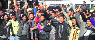 Mussoorie, January 4 The union members used their vehicles to block the road at Suvakholi around noon and stopped the vehicles bound to