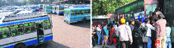 (right) commuters trying to board a Himachal Roadways bus at ISBT, Sector 17, Chandigarh, on Monday. tribune photos: manoj mahajan