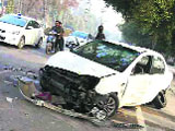 A car that met with an accident on Mall Road, Ludhiana, on Friday.