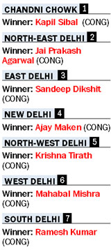 According to votes polled by the BJP, AAP and Congress across all 10 Assembly segments in each Lok Sabha constituency, the AAP was in the first place in the Chandni Chowk and New Delhi Lok Sabha constituencies. Chandni Chowk is currently represented by Law Minister Kapil Sibal and New Delhi by Ajay Maken, head of the Congress's communications department. In the Assembly segments of the remaining five Lok Sabha seats — North-East Delhi (represented by Delhi PCC chief JP Agarwal), East Delhi (Sheila Dikshit's son Sandeep Dikshit), North-West Delhi (Union Minister Krishna Tirath), West Delhi (Mahabal Mishra) and South Delhi (Ramesh Kumar) — the BJP garnered maximum votes. The Congress was not even in the second place in any of these constituencies. The only solace for the Congress was it had come a close third in the North-East Delhi (behind AAP by 3,191 votes) and East Delhi (behind AAP by 4,410 votes) Lok Sabha constituencies. While the AAP was ahead of the BJP in the Chandni Chowk area by less than 7,000 votes, it had a lead of over 40,000 votes in New Delhi. The BJP, on the other hand, enjoyed a wider margin — from 38,000 votes in East Delhi to over 1.5 lakh votes in North-West Delhi. The lack of performance by the AAP government during its 49-day rule might also hurt the prospects of the party. The party's attention towards the Parliamentary polls and treating Delhi only as a stepping stone also hurt its supporters. Analysts point out that the haste shown by Arvind Kejriwal to resign from the office over the Delhi Jan Lokpal Bill was an exit door sought by the AAP and its leaders to work for greater gains. Since Kejriwal is not an alternative to the Congress at the Centre, votes against the Congress are likely to be deflected from the AAP to Narendra Modi during the Lok Sabha polls. Besides, the issues in the Assembly elections are different from those in the Lok Sabha polls and this is where the BJP may emerge stronger. Moreover, there was a miniscule loss of votes for the BJP in the Assembly elections despite the emergence of the AAP, which may give the final push to the BJP. For the Congress, the script could not have been worst. From being a majority party for three consecutive state polls to being a party with single digit MLAs in Delhi, clearly reflects the future for the Congress. The party would need nothing less than a miracle to emerge from the abyss it is in not only because of the emergence of the AAP and the Modi-led BJP, but due to its own policy and action paralysis. |