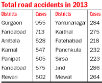 Haryana has one of the highest accident rates in the country, with nearly 13 persons being killed and about 25 injured every day on the state’s roads. The high density of national and state highways passing through the state, rash driving and alleged faulty design of roads are some of the causes for the accidents. Recently, five police personnel were suspended and another five were warned against dereliction of duty while handling accident victims in Gurgaon district last year.