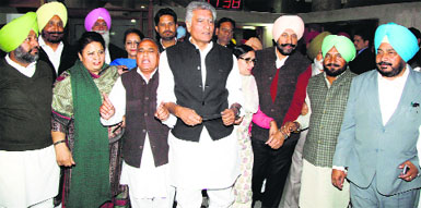Amritsar, March 6 Talking to the mediapersons after paying obeisance at the Golden Temple here, he denied any division within the Sanjha Morcha over talks with the Congress. He said he had been authorised by senior CPI leader AB Bardhan and SAD (Longowal) leader Surjit Singh Barnala to initiate parleys with the Congress. Manpreet said that unity among the Opposition parties was the need of the hour. "Our grassroots workers and central committee members were of the opinion that the Opposition needed to unite to halt the SAD-BJP juggernaut," he said. On his confidant Bhagwant Mann quitting the PPP over the issue, he said: "He was in favour of a tie-up with AAP, but the latter wanted us to disband the PPP and merge with party. I did not find any logic in it." Manpreet said the people of Bathinda wanted to see SAD's Harsimrat Badal defeated. He said Harsimrat was not an "ordinary" MP. She was the wife of the Deputy CM and daughter-in-law of the CM. Yet Bathinda had not benefited in any way. "She promised the moon to the electorate, but delivered nothing," he alleged. On the Congress role in Operation Bluestar and the 1984 riots, the PPP chief said justice was yet to be delivered to the riot victims. "There is also the court of the people and above all, the court of the Almighty " he added. On Navjot Singh Sidhu, who has been at loggerheads with the SAD leadership, Manpreet said: "I feel that Navjot has a clean image and people such as him are needed in politics." Alliance Sonia's decision: Capt Chandigarh: Former Chief Minister Capt Amarinder Singh today said the decision to forge an electoral alliance with PPP president Manpreet Badal was that of party president Sonia Gandhi. He said he was not interested in national politics and would not contest the Lok Sabha elections. Amarinder Singh said the PPP had got only 2 per cent of the total votes polled during the assembly elections, the remaining votes being that of the Left parties. “There is a strong undercurrent of anger against the SAD-BJP alliance and it would suffer a big setbacks in these elections,” he claimed. He said he was opposed to a CBI inquiry in the drugs case . " I want that the inquiry should be completed at the earliest and the guilty be brought to justice. Criminals do not belong to any party," he added. —Sarbjit Dhaliwal |