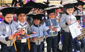 Small Wonders School, Sector 61, celebrated their ‘Graduation Day’ with great fervour and enthusiasm today. As many as 150 students took part in the graduation ceremony. Bidding adieu to the graduating students, school principal Hardeip Nama said, “It is rather an emotional but great moment of pride for the school.”