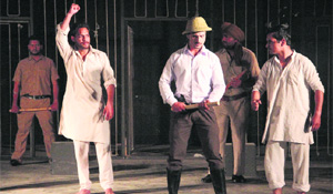 Artistes stage a play on the life of Bhagat Singh, Rajguru and Sukhdev at Punjabi Bhawan in Ludhiana. A Tribune photograph