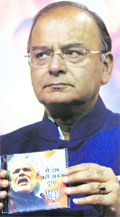 Senior BJP leader Arun Jaitley releases the anthem in New Delhi on Tuesday. Mukesh Aggarwal