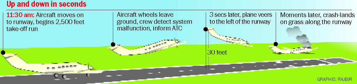 The pilots detected a malfunction in the control systems during the take-off roll around 11.30 am, a source said. Just three seconds after lift-off, the aircraft yawed towards the left, indicating control mechanism failure or loss of power in the left engine.