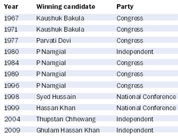 The Bharatiya Janata Party (BJP) has fielded Thupstan Chhewang, who had won the seat as an Independent in 2004, while its arch-rival Congress has fielded Tsering Samphel, president of the District Congress Committee (DCC), Leh, and former member of the National Commission for Scheduled Tribes, from the constituency. Samphel is contesting the elections for the first time.