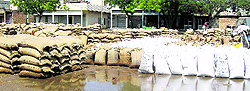Rs 31 lakh to procurement agencies on account of delayed lifting of wheat from the grain market and 28 purchase centres here.Sacks of wheat lying in a pool of water after heavy rain in Fazilka. A Tribune photograph