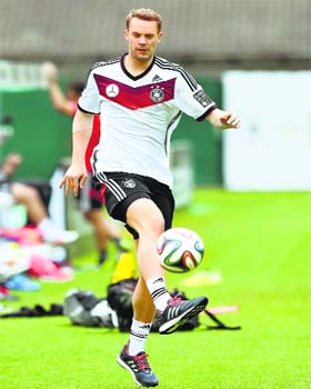 St. Martin (Italy): Germany keeper Manuel Neuer and captain Philipp Lahm kicked off their belated World Cup preparations on Thursday with light training after missing the start of the camp through injury. Neuer did not do any goalkeeping training and only some light running as he races to recover from his shoulder injury in time for the start. There was more good news for coach Joachim Loew with Lahm training in part with the team for the first time on Thursday as he also recovers from a foot injury.