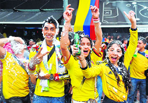 Bogota: Long-suffering Colombians are shirking work, carousing in the streets and painting the nation yellow after a start that has exceeded all expectations and left them on edge ahead of Saturday’s knockout game. Devoted yet oft-disappointed supporters, whose team are competing at the finals for the first time in 16 years, have been dropping everything to watch the team play. In the capital Bogota, the swanky Parque 93 exploded into a raucous display of so-called ‘yellow fever’, named for the team’s sunshine-coloured shirts, as favourite James Rodriguez scored the final goal in a 4-1 win against Japan on Tuesday. |