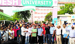 Denied admission, 100 aspirants protest at Adesh Institute