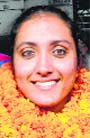 Amritsar, July 30 Her family members, friends, teachers and fellow students danced to 'dhol' beats as the country's young athlete reached the college campus. Earlier, she was given a rousing welcome at the railway station by Railways employees. Her father JS Dhillon is employed with the Indian Railways. Navjeet, who recorded 56.44 m discus throw in the world event to bag the honour for India, owed her success to the family, especially her father who trained her at tender age. On missing the second position by just 30 cm, she said perhaps she could not sustain her killing instinct till the last moment. She, however, said she was contented with her performance. |