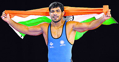 “Now we’ll go to eat!” said Sushil Kumar happily last night. When Sushil was a 66kg fighter, he was perpetually hungry, for he had to watch his weight all the time. “That made me very irritable all the time,” he says. “But after moving to 74kg, I’m a very happy man!”The gold medal that he won in double quick time last night in the 74kg category left Sushil all the more happy. When The Tribune caught up with him, Sushil was his usual super-polite, super-humble self – and super-patient. It was an extremely cold and blustery evening, and Sushil had only a thin jersey and jacket on, but he didn’t lose his customary civility and kindness as he answered questions. Excerpts from the interview: