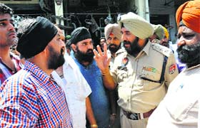 Jalandhar, August 20 The MC staff armed with JCB machines, accompanied by the traffic police, initiated their action from Ladowali Road. The MC team had to face the wrath of the automobile and scrap dealers as the team tried to tow away cars standing along the road. The dealers forced the MC team led by Vikrant Verma and ACP Traffic Dalbir Singh Buttar to move without much action. Heated arguments started between the teams and the shopkeepers on the issue which went on for about 15 minutes. The team then went on to Mai Hiran Gate. The bookshop sellers and stationery shop owners who had displayed their goods five to 10 feet beyond their boundary line had to face the wrath. The teams lifted huge bundles of books, copies and other stuff that was stacked outside the premises. Much chaos prevailed as the shopkeepers tried their best to prevent their stock from being