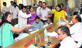 Uproar was witnessed in the monthly House meeting of the local Municipal Corporation (MC) here today.