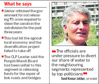 Rs 5 crore required to clean the canals in the sub-division for the past three years, Jakhar said this had given a big jolt to the agricultural economy. The much-publicised plans on diversification had fallen flat. The Punjab Mandi Board had been unfair to this segment in releasing funds for the repair of link roads and bridges. He said, “Since all the efforts made inside the Vidhan Sabha as well as outside have failed to urge the government to develop the area, we will have to raise our voice.” |