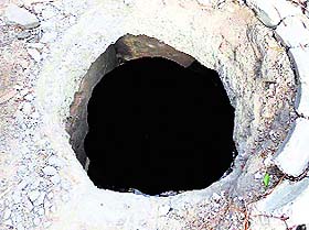 An open manhole on the Disposal Road in Jagraon. A tribune photograph