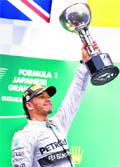 Britain's Lewis Hamilton won a wet and sombre Japanese Grand Prix on Sunday to extend his Formula One lead over Mercedes team mate Nico Rosberg to 10 points with four races remaining. The race started behind the safety car due to heavy rain and ended without celebration after Marussia's Jules Bianchi was taken to hospital following a crash that left the young Frenchman seriously injured. Rosberg, who had started on pole position, finished second following a third deployment of the safety car and then red flags being displayed. Germany's quadruple world champion Sebastian Vettel, who is leaving Red Bull for Ferrari at the end of the season, took third place with the result based on positions after 44 of the scheduled 53 laps. Australian Daniel Ricciardo, who would otherwise have been on the podium, was fourth for Red Bull. The drivers tense faces as they waited to step on the podium told the true story of the afternoon, with Bianchi foremost in their thoughts. No champagne was sprayed, with the top three merely clinking the bottles and taking a quiet swig before placing them back on the floor. "The driver is not conscious and has been sent to the hospital by the ambulance because the helicopter cannot go in these conditions," said a spokesman for the governing International Automobile Federation (FIA). "It's obviously a real anti-climax to hear that one of our fellow colleagues is seriously injured so that's really the main worry," said Hamilton, who would otherwise have been delighted with his third win in a row and one of his most impressive performances. — Reuters