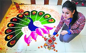 A student makes a rangoli on the campus of the International Institute of Fashion Technology in Ludhiana on Tuesday.