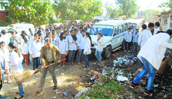 Kangra, November 14 RPGMC principal Anil Chauhan said the Medical Council of India (MCI) had directed all medical colleges to conduct a programme under the Swachh Bharat Mission. Paramedics, nursing students, faculty and college staff today participated in the cleanliness drive. They also took out a rally, which was flagged off by Anil Chauhan, to sensitise others. SCA president Prashant Dhatwalia said students made shopkeepers aware of community participation in keeping the surroundings clean. — OC |