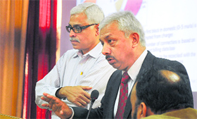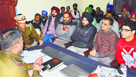 Police officials interact with chemists during a meeting in Ludhiana on Friday.