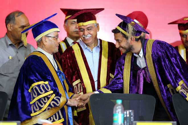 More than 300 students from BML Munjal University’s School of Management and School of Engineering and Technology were conferred with degrees on successful completion of MBA, BBA, BCom. (H) and BTech programmes at the third convocation of the university in Gurugram on Saturday. Former President of India, Pranab Mukherjee, was the chief guest on the occasion. Delivering the convocation address he said that aspirational India needs socially conscious and professionally competent youth, who will lend a helping hand in meeting the challenges of growth and industrial development. The convocation commenced with an academic procession, followed by welcome address and presentation of the annual report by the Vice-Chancellor, Prof. B.S. Satyanarayana.