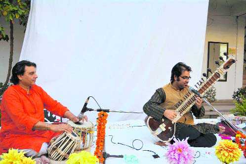 Sitarist Purbyan Chatterjee and tabla player Akram Khan during a sitar recital at SBSPGI at Balawala on Friday.