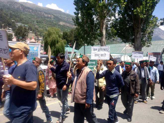 Protesting against the non-implementation of the Forest Right Act, 2006, people from various villages of Kinnaur district on Thursday staged a major protest at the district headquarters of Reckong Peo.